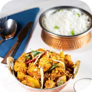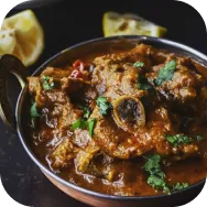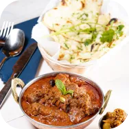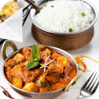 Juicy boneless leg of lamb slow-braised in a medium spiced curry of onion, tomato and Kashmiri chilli.