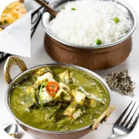 Traditional recipe of baby spinach sautéed with tomato, onion, garlic & garam masala.