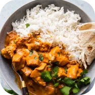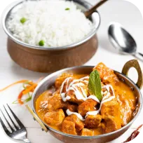 Creamy tomato curry spiced with paprika, fresh ginger & cilantro.