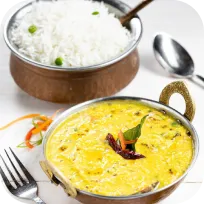 Simmered yellow split lentils tempered with cumin, mustard seeds, Kashmiri chili & curry leaf.