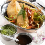 Savory pastry filled with mashed potato, sweet peas, coriander, roasted cumin & ginger, served with dipping sauces.